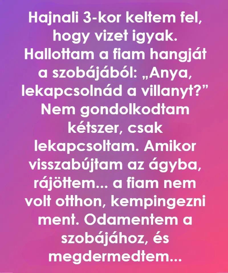 Egy éjszaka, hajnali három körül felébredtem. Szomjas voltam, félálomban jártam a lakást. Csend volt, minden nyugodt, a házban senki sem mozdult.