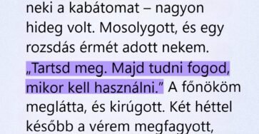 Egy hajléktalannak tűnő nőnek odaadtam a kabátom, két hét múlva egy bársonydoboz mindent megváltoztatott