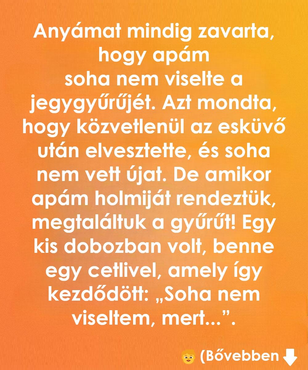 Mikor rákérdezett, a férfi mindig kedvesen mosolygott, és csak annyit mondott: „Már régen elvesztettem. Nem a gyűrű a fontos, hanem mi ketten.”